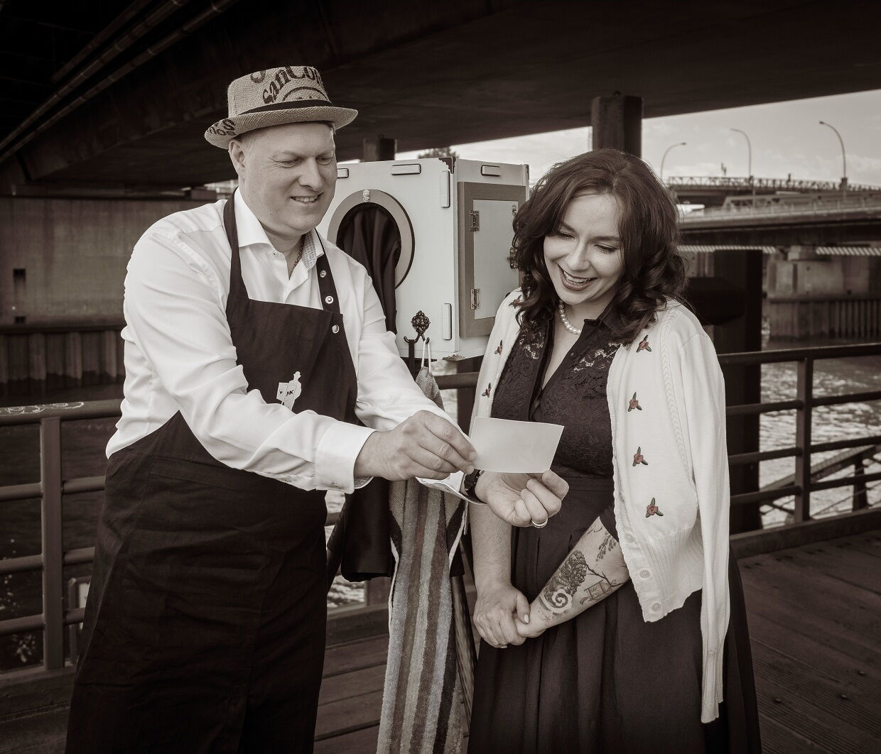 Marc Kairies fertigt in "minutenschnelle“ mit seiner Cámara Minutera, man spricht gerne von der ersten „Sofortbildkamera“ der Welt, Schwarz-Weiß-Porträts von unseren Besuchern beim Straßentheaterfestival an. Die Kamera verfügt über ein eingebautes Labor, so dass die Bilder gleich mit nach Hause genommen werden können. Auch mehrere Bilder sind möglich.