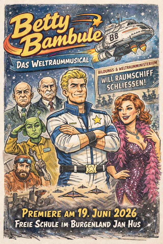 Bei den Straßentheatertagen wird ein Auszug aus dem Stück präsentiert. Die Premiere von Betty Bambule – Das Weltraummusical findet am 19.06.2026 in der Freien Schule im Burgenland Jan Hus statt.